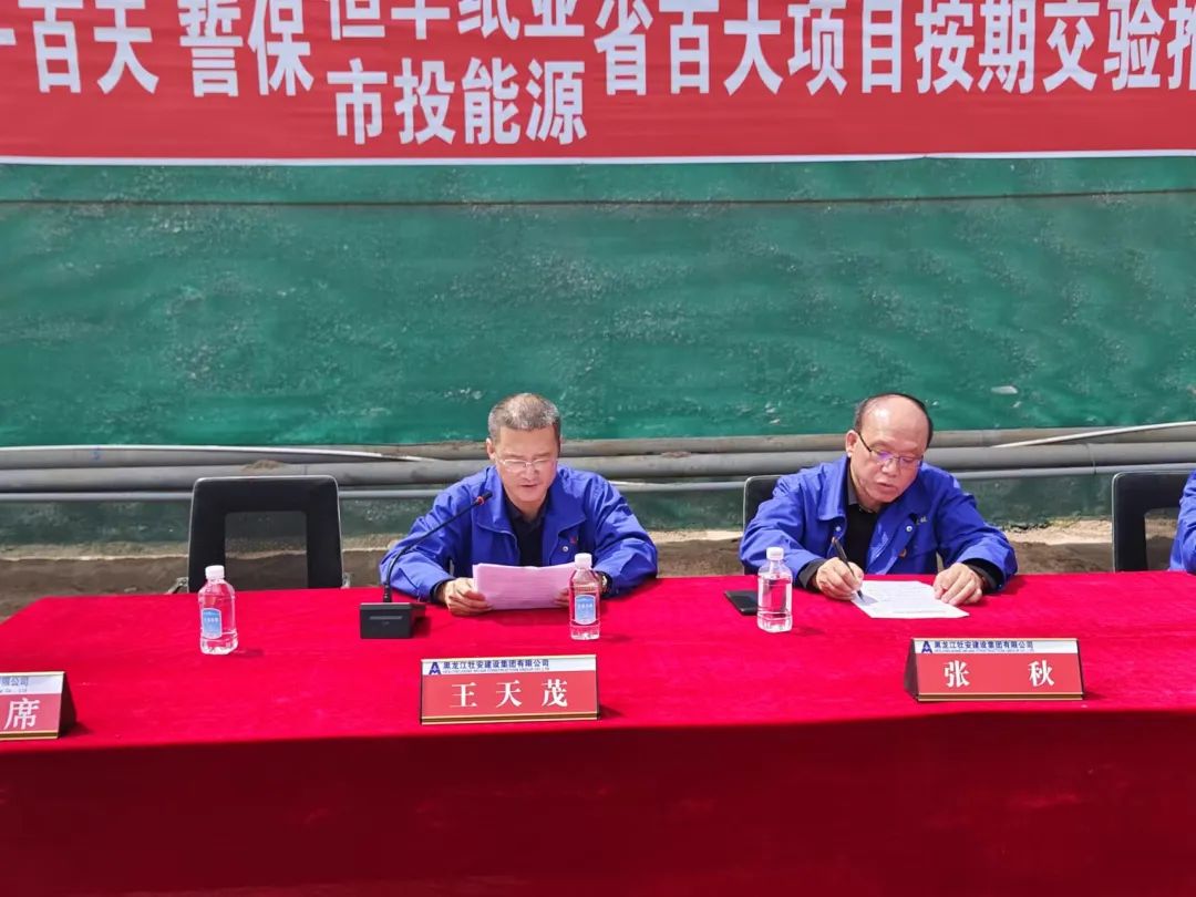 6月15日上午9時(shí),牡安集團(tuán)省百大項(xiàng)目按期交驗(yàn)推進(jìn)大會(huì)在恒豐紙業(yè)特種涂布紙項(xiàng)目場(chǎng)區(qū)內(nèi)順利召開。此次大會(huì)由副總經(jīng)理劉群主持,集團(tuán)總經(jīng)理張秋、副總經(jīng)理王天茂、張新福、杜鳳艷、集團(tuán)總部各部門主要負(fù)責(zé)人及本埠內(nèi)各項(xiàng)目部成員出席會(huì)議。